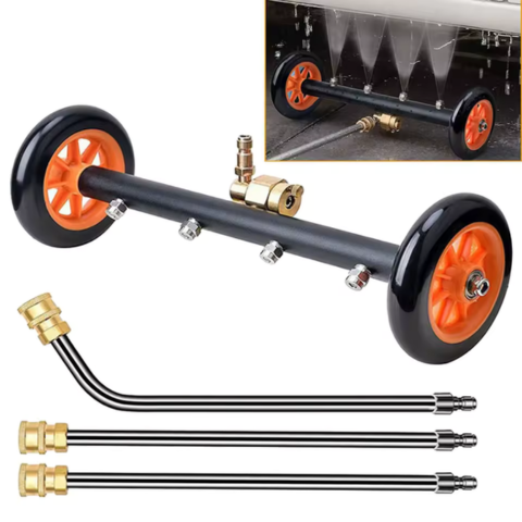 Tämä alustan puhdistaja on täydellinen lisävaruste pitämään autosi alapuoli puhtaana helposti. Tehokkailla suuttimilla ja kestäville pyörille varustettuna se liitetään helposti painepesuriisi sen 1/4" nopean liittimen ansiosta. Monipuolinen, sitä voidaan käyttää sekä mudan ja suolan poistamiseen ajoneuvojen alta että terassien, käytävien ja autotallien siivoamiseen.