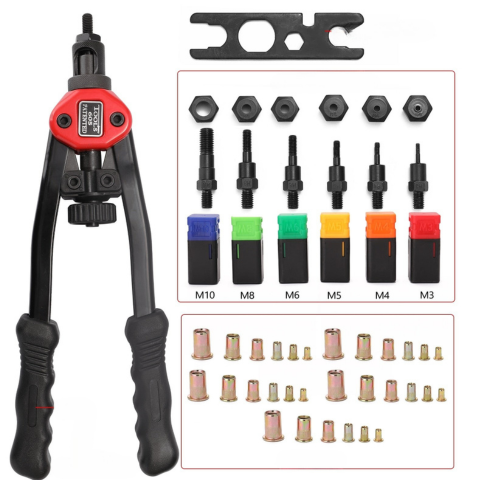 Questo strumento di rivettatura manuale è progettato per offrire una massima resistenza e una durata a lungo termine. Grazie alla sua costruzione robusta, consente di effettuare lavori di fissaggio solidi e precisi, sia per il fai-da-te domestico che per riparazioni più impegnative. La sua impugnatura comoda lo rende un alleato affidabile nella vita quotidiana.