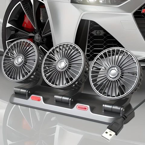 Tento mini ventilátor s tromi hlavami zabezpečuje silnú cirkuláciu vzduchu v celom interiéri. Každá hlava je nastaviteľná, aby presne nasmerovala prúd podľa potrieb pasažierov. Kompaktný a skladací, ľahko sa integruje do akéhokoľvek vozidla.