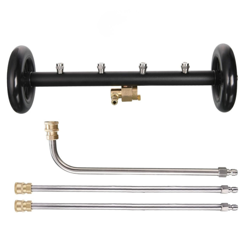 Denna högtryckssubchassirengörare gör det enkelt att rengöra undersidan av fordon utan ansträngning. Tack vare sina kraftfulla munstycken och praktiska hjul glider den under bilen för att ta bort smuts, lera och väg salt. Dess snabba koppling 1/4" säkerställer enkel installation på de flesta högtryckstvättar. Mångsidig, den kan också omvandlas till en vattensop för rengöring av golv, terrasser och gångar.